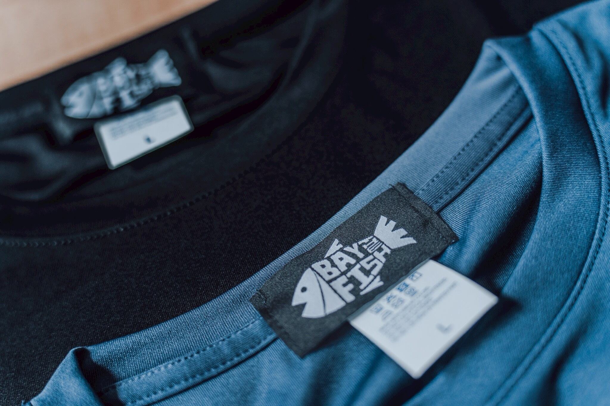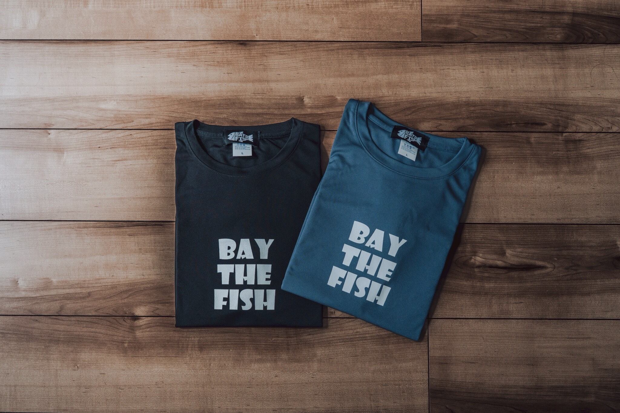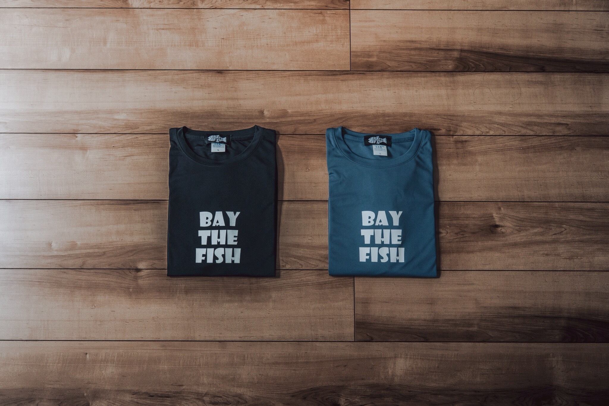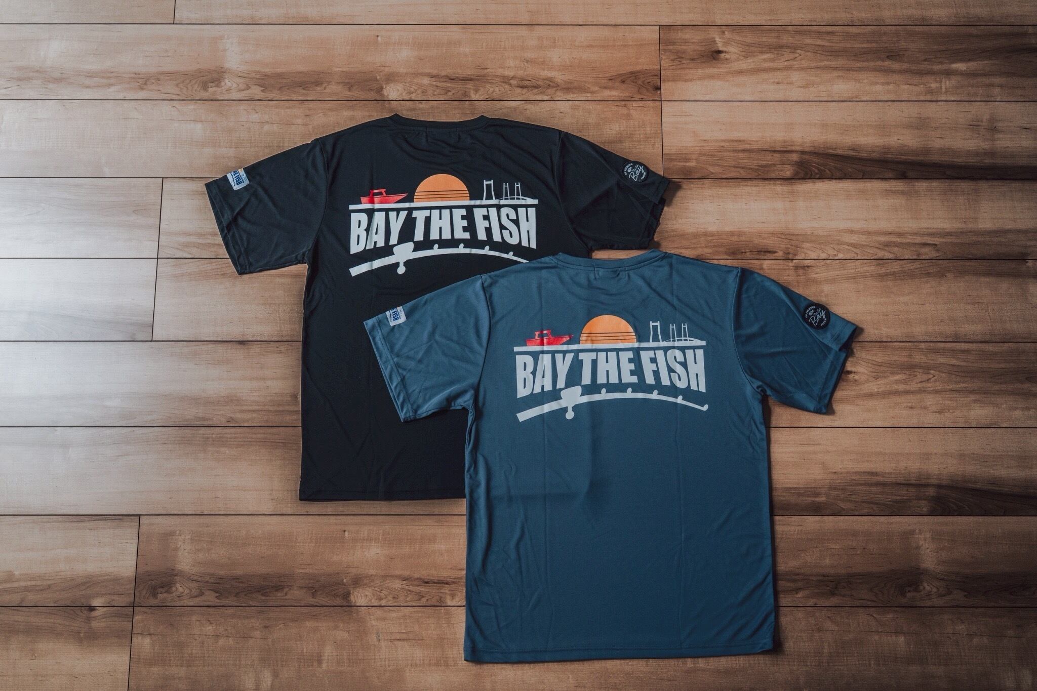 今回も前はシンプルなBAY THE FISHロゴデザイン、後ろはBAY THE FISHの大きなロゴを採用しました!