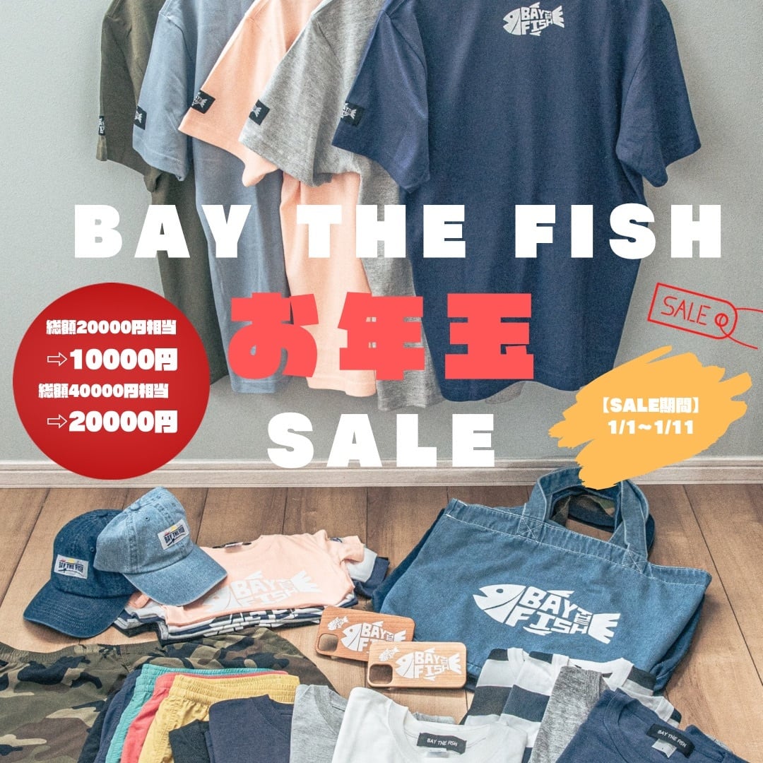 パーカー1枚 / スウェット 1枚 / ロンT1枚 / Tシャツ1枚 / バックや帽子等 / BAY THE FISHステッカー