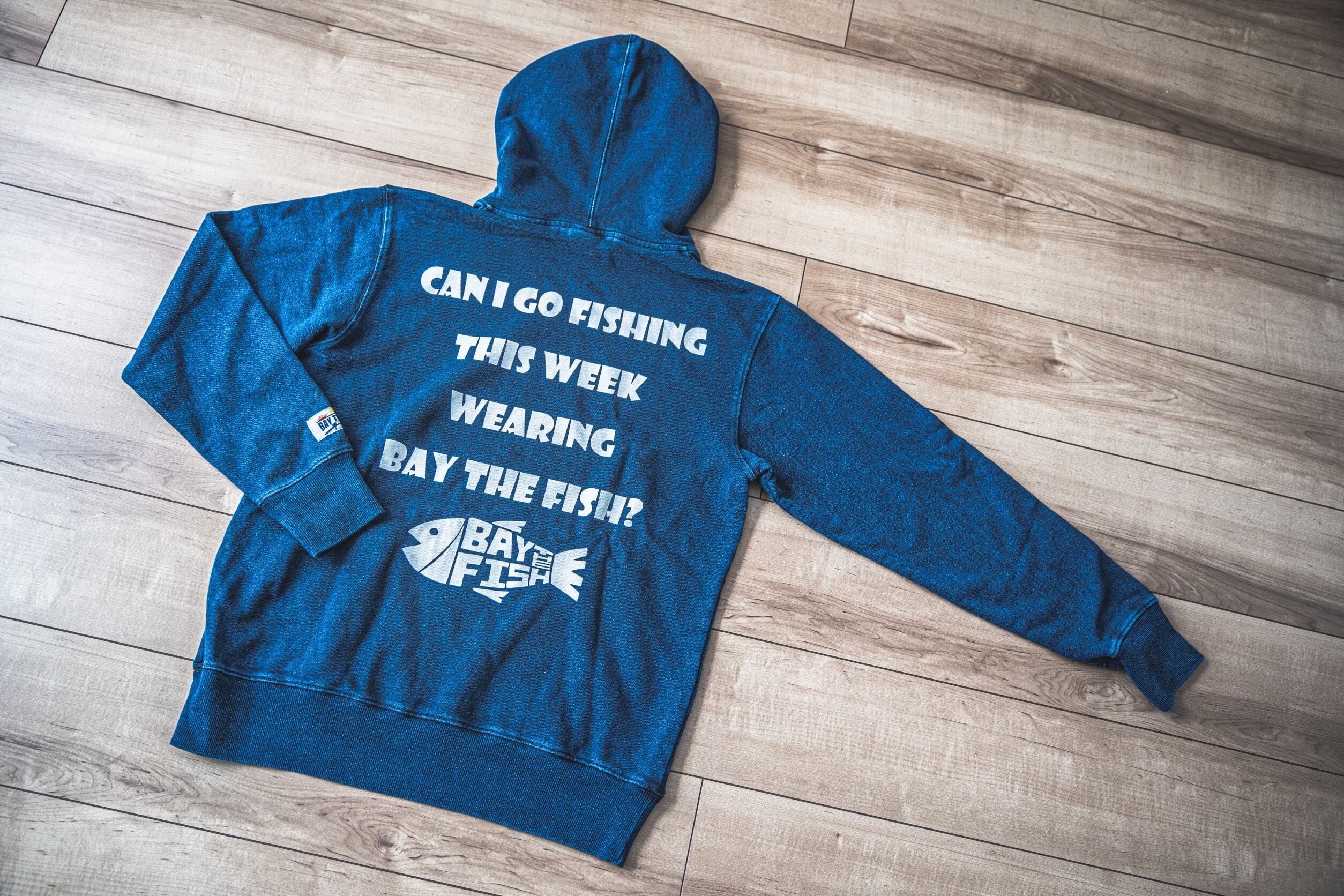 『CAN I GO FISHING THIS WEEK WEARING BAY THE FISH?』=『今週、BAY THE FISHを着て釣りへ行っていい?』