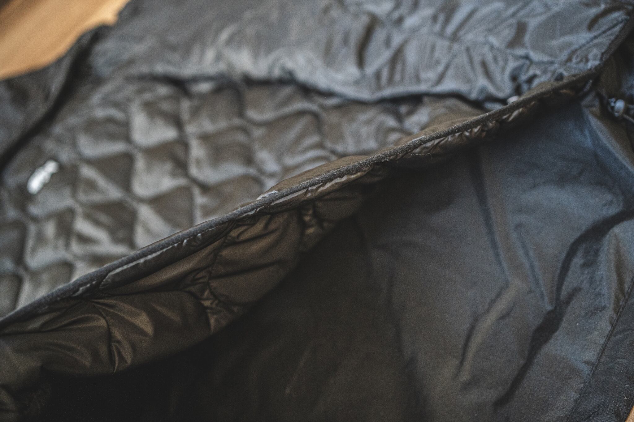 裏地のキルティングはトレンドのミリタリーな雰囲気を取り入れた瓢箪キルト。
