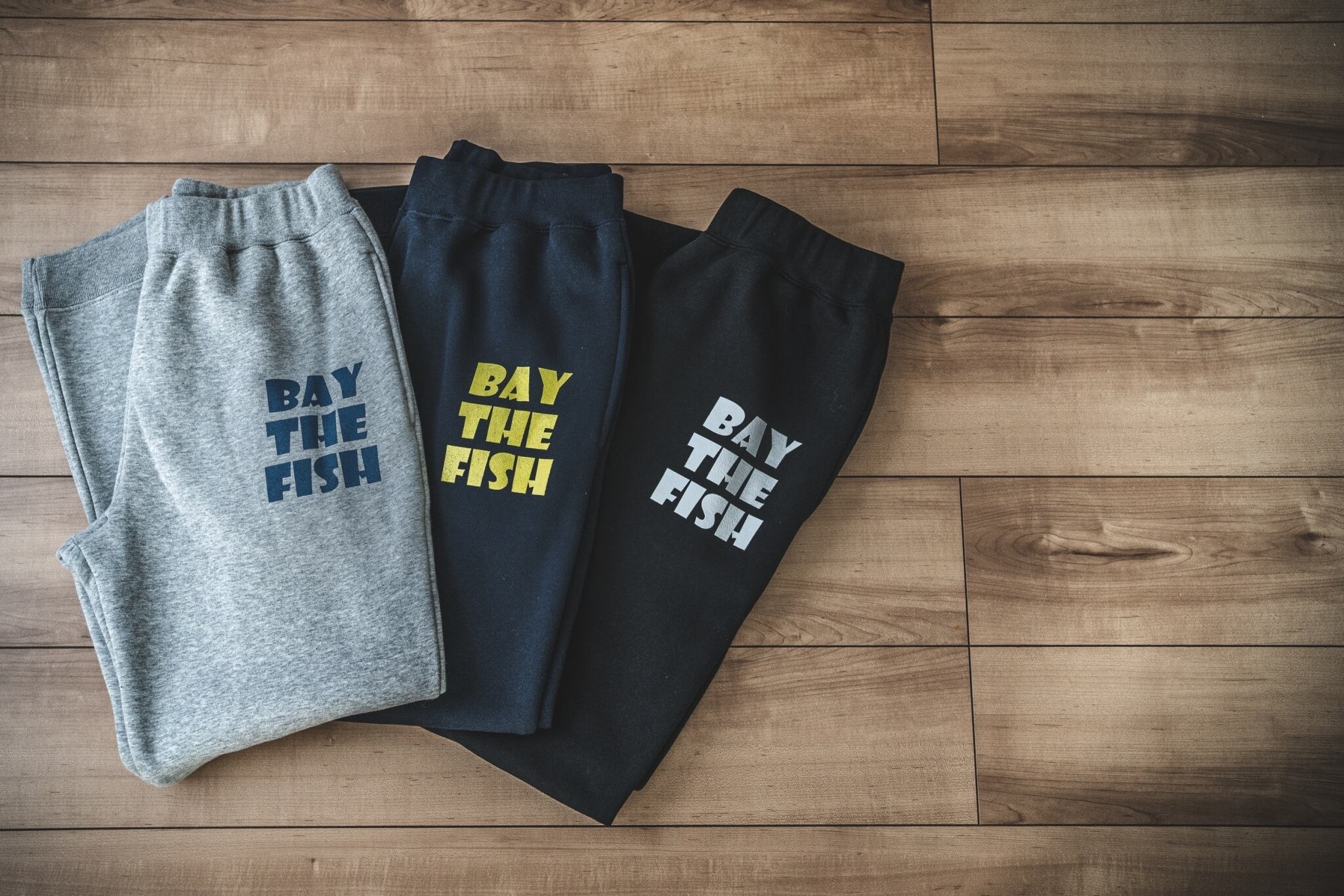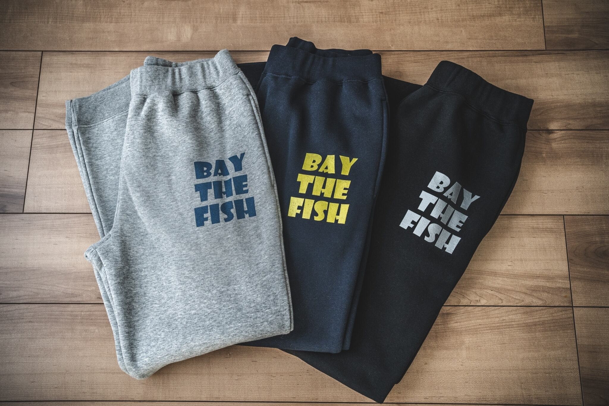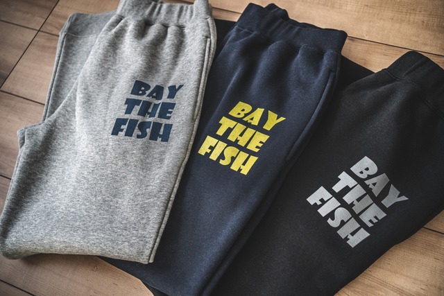 厚手であたたかく、はき心地がやわらかい裏起毛BAY THE FISH スウェットパンツ。