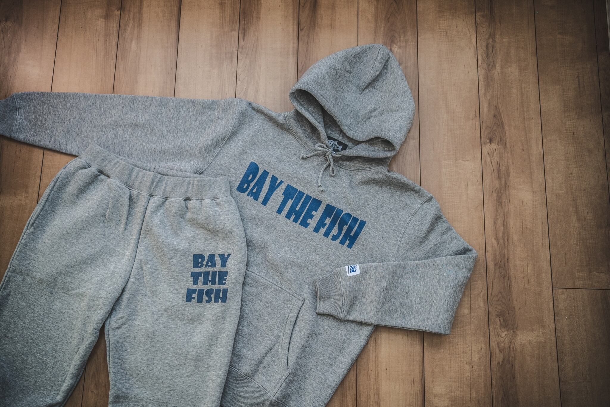BAY THE FISH 10.0オンス TC スウェット プルオーバー パーカー(裏起毛)と上下セットアップを組むことが可能です!プライベートはもちろん、釣行前後もBAY THE FISHのカッコイイウエアでお過ごしください!