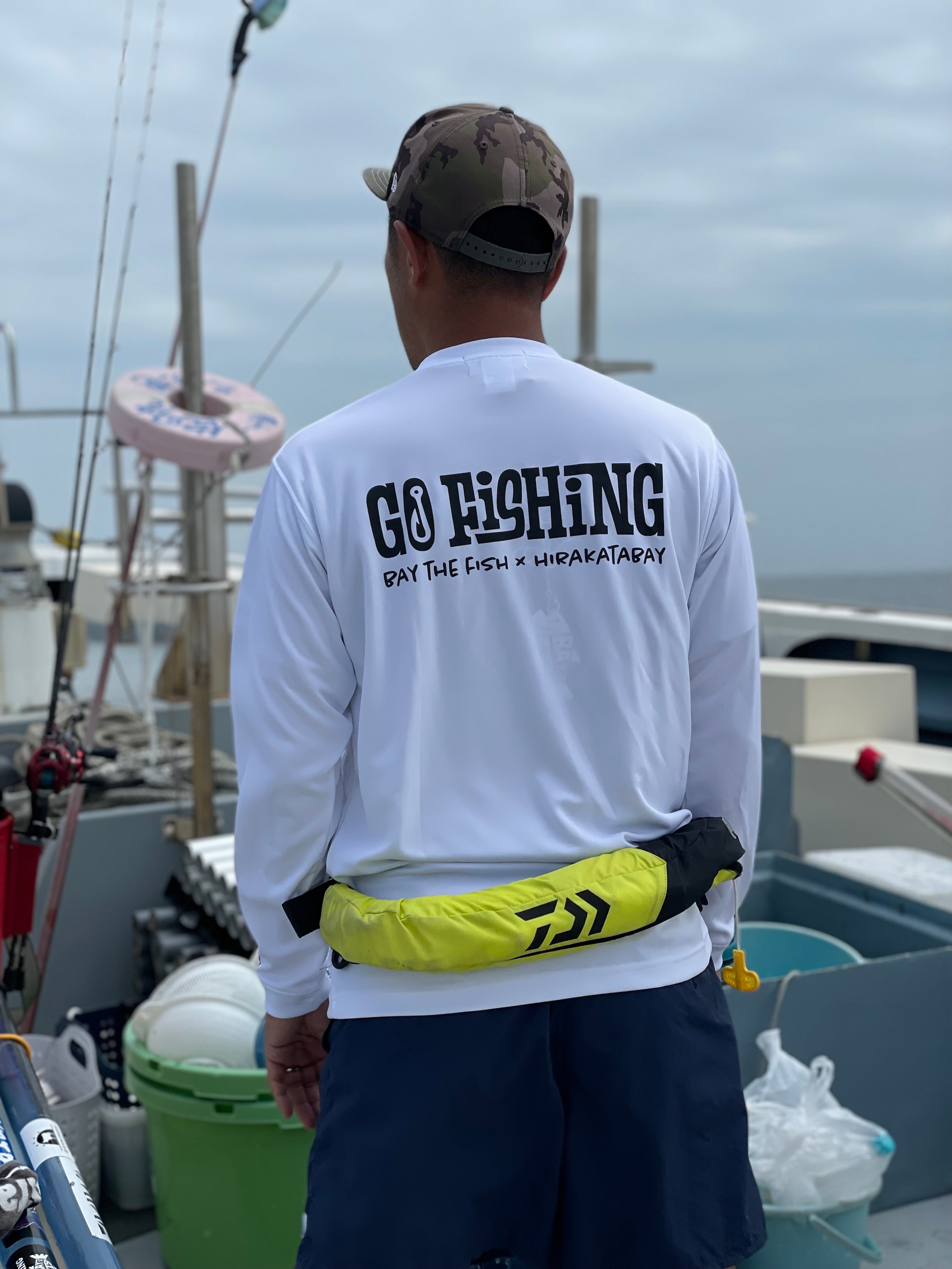 前はBAY THE FISH初のワッペンを採用してシンプルに、後ろはBAY THE FISHとデザイナー・Hirakatabayさんとのコラボ。釣りバカとすぐわかる『GO FISHNG』ロゴをプリントしました!